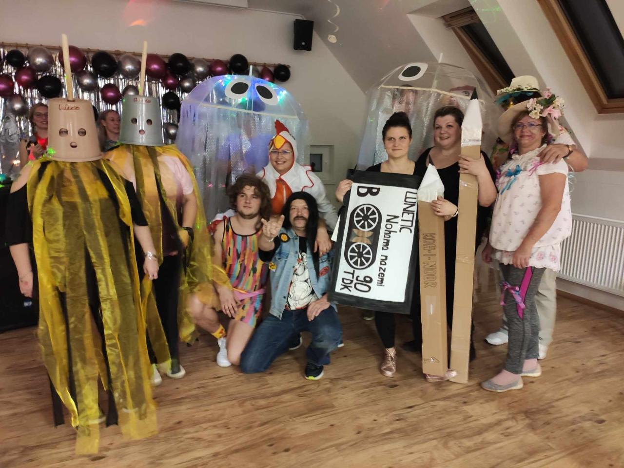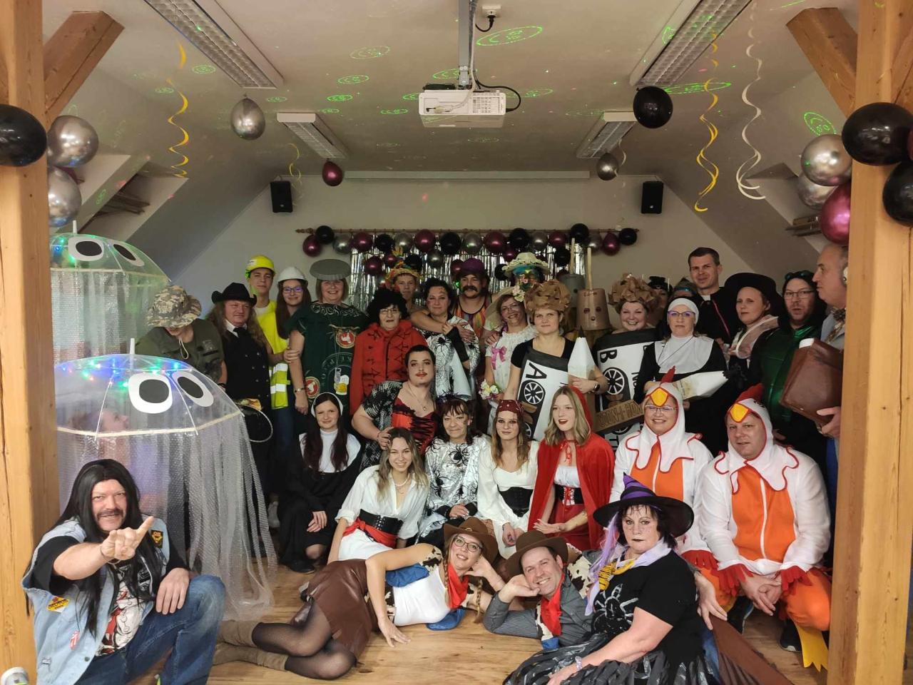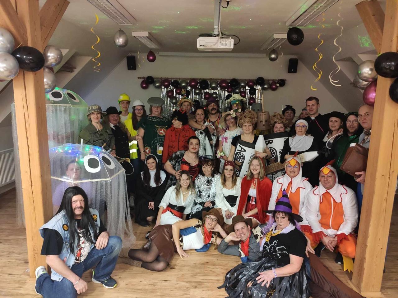 Bylo by zdlouhavé vyjmenovat všechny, uvedeme jen několik zástupců: medúzy, čertice, kyblíky Vileda, velikonoční kraslice, čarodějnice, Ozzák, Otík z Vesničko má středisková, pivo, rybářka, kuřátka, pirátky, fitness trenér, lehká děva i zástupci církve… Ostatní si můžete najít na přiložených fotografiích a zapojit svou vlastní fantazii. Účast byla nádherná, sál se zaplnil. Maškarní se stává rok od roku oblíbenějším.