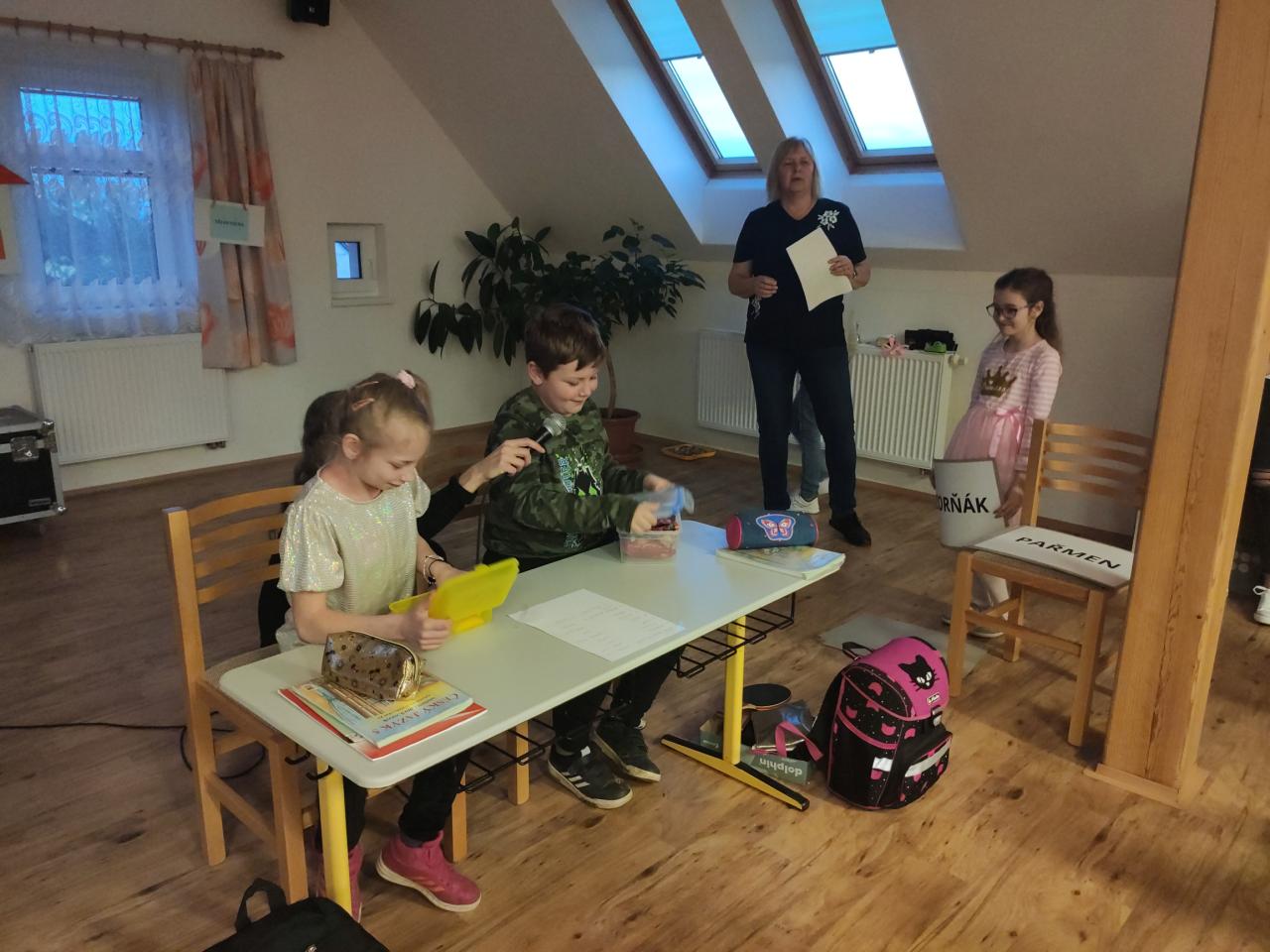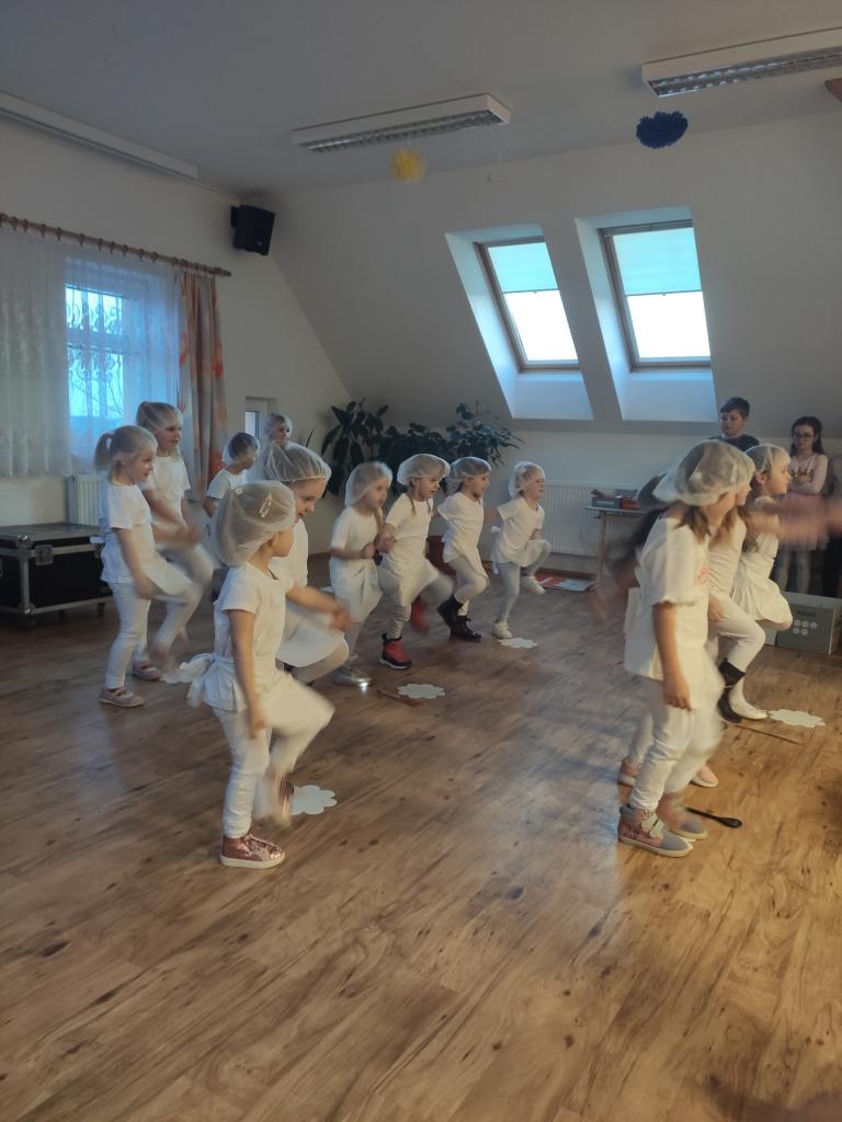 Včeličky z mateřinky předvedly krásný kuchařský taneček s košíkem plným buchet, jehož obsah pak rozdaly ženám. Kromě buchet od nich dostaly ženy také papírovou kytičku s bonbónem! A naši školáčci zahráli scénky ze života školy, doplněné vtipnými hláškami. Vystoupení byla zábavná a pečlivě připravená a sklidila bohatý a zasloužený potlesk. Všem dětem i pedagogům velice děkujeme za podporu a perfektní práci!