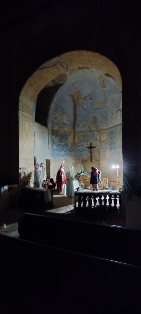 Oproti loňskému roku nám počasí příliš nepřálo, nebesa zvedla stavidla a po celý den nepříjemně pršelo, nebo aspoň mrholilo. Přesto se lidé dobré vůle nedali odradit a na setkání s Mikulášem se dostavili. Naštěstí již máme opravenou sakristii, která poskytla sice trochu temné, zato suché a tolik potřebné přístřeší. Snad jen čertům trochu zmokly kožich. Anděl pak k nim chodíval s dětmi pro svědomí, totiž malý svitek opatřený pečetí s hříchy i ctnostmi, co jich na dětech vykoukali a od rodičů odposlouchali. V kněžišti už za melodie nebeské hudby vyčkávali nebeské bytosti, k nimž dítka často přistupovala zpočátku nesměle, nýbrž brzy snad zjistila, že se nemají čeho bát a zachovala klid. Panenka Marie pak přečetla všechny jejich dobré i špatné vlastnosti, líčka se trochu začervenala, tu trošku studem, tu polichocením (taky chladem), ale jakmile Mikuláš po básničce předával balíček s mlsáním, hned se dětské oči rozzářily! Rodiny uctivě poděkovaly a pak už odcházely, vedeni cestou světel ven a do svých domovů.